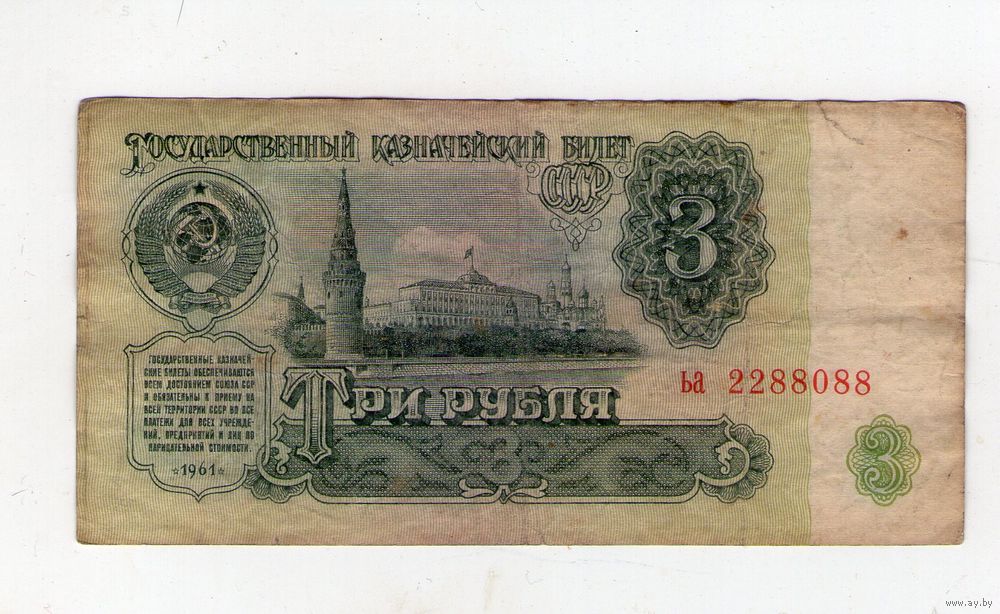 3 рубля СССР. ьа 2288088