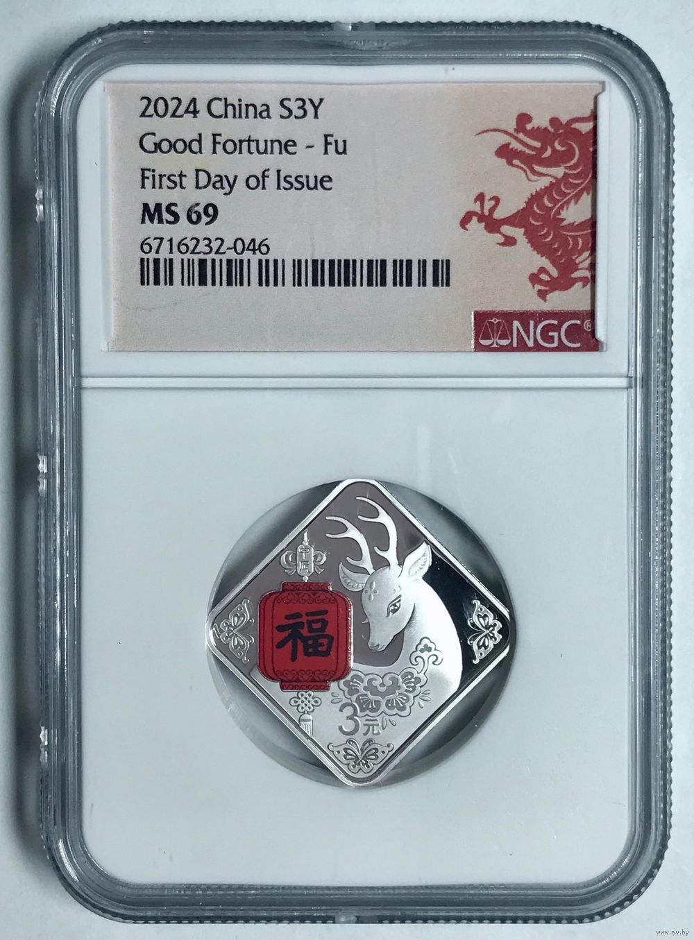3 юаня 2024 Китай ms 69 NGC серебро! Идеальный подарок на 14 февраля!