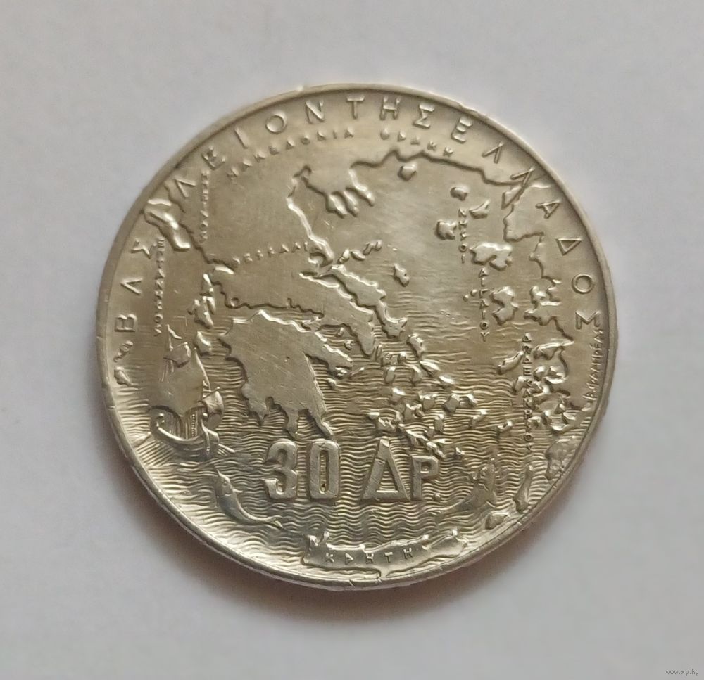 30 драхм, 1963г. 835пр., серебра. 100 лет пяти королям. Греция