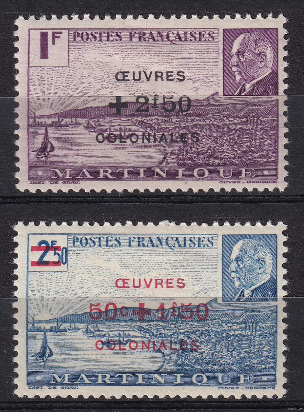 30.FrK. Франция. Колонии. Мартиника. Маршал Петен. Надпечатка нового номинала. 1944 г. Полная серия. Mi.##200-201.