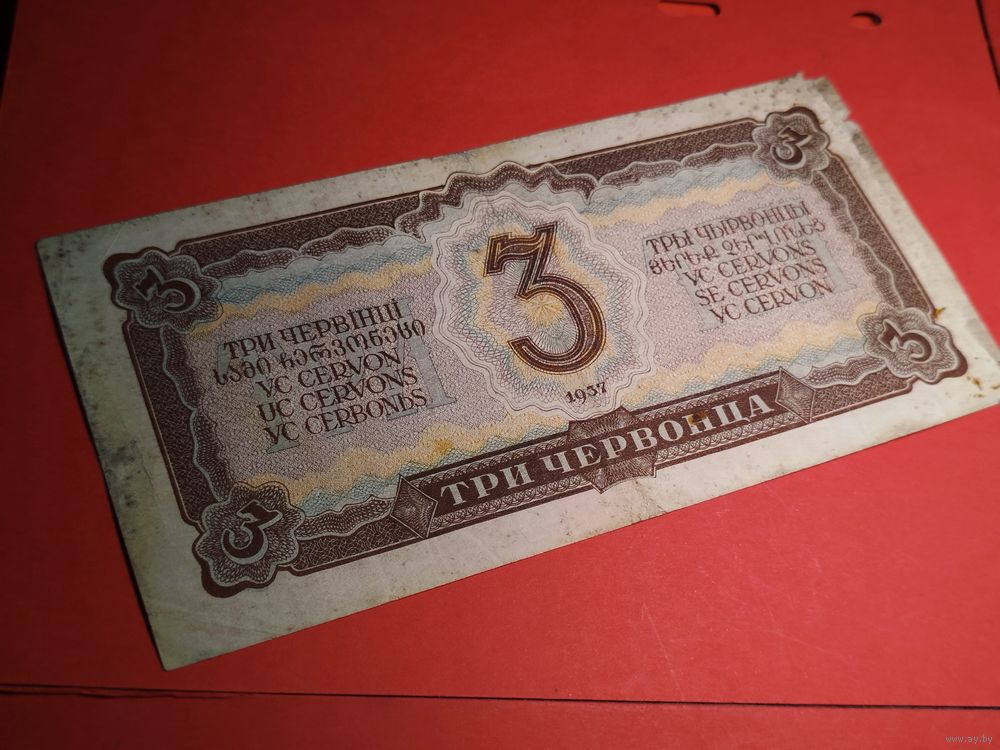 30 рублей (3 Червонеца) 1937. СССР. С Рубля. (38)