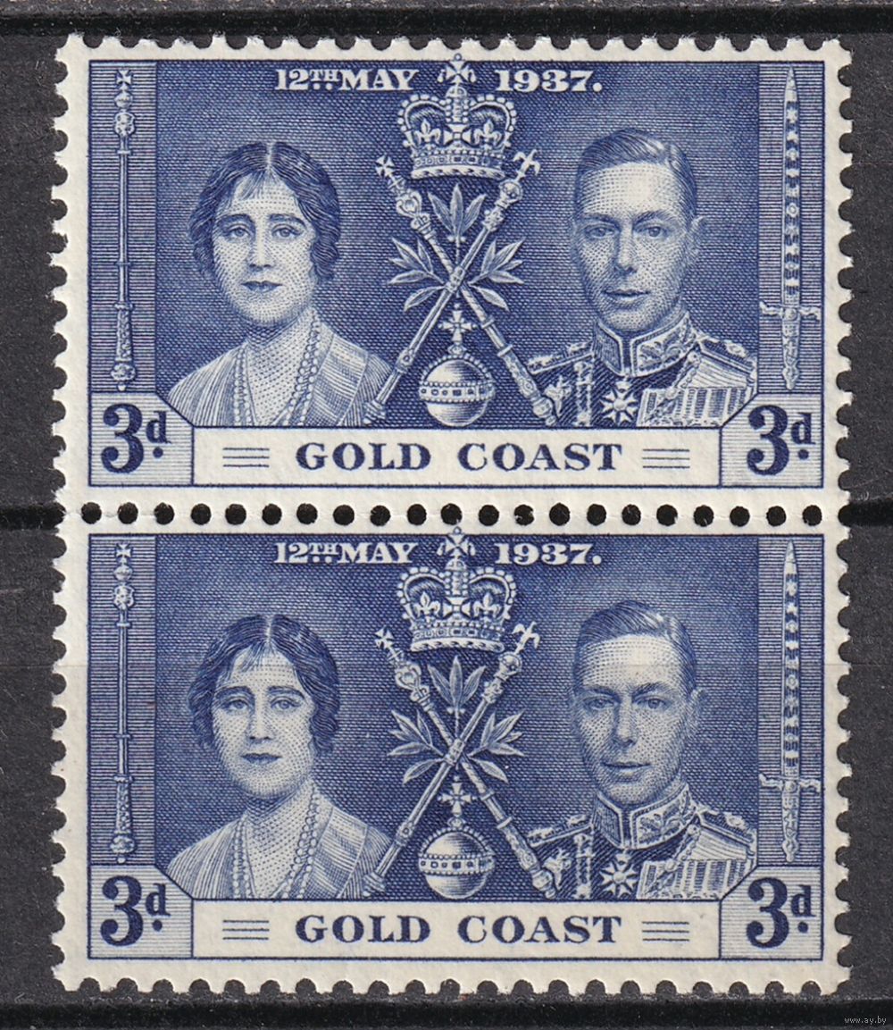 Золотой Берег. Коронация Георга VI и Елизаветы. 1937 г. 3P. Mi.#104. MNH. Пара.