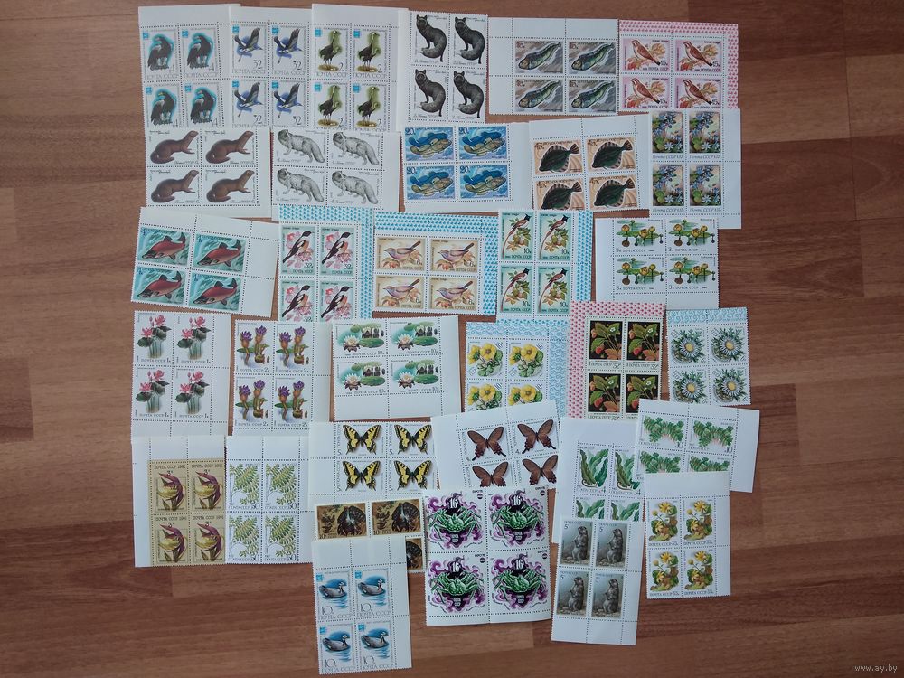 33 КВАРТБЛОКА чистых марок СССР ФЛОРА, ФАУНА