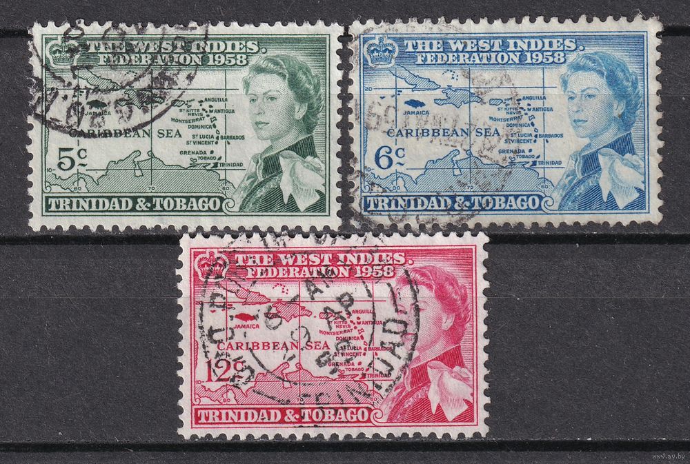 35.BrKS. Великобритания. Колонии. Тринидад и Тобаго. Создание Британской Вест- Индийской федерации. 1958 г. Полная серия. Mi.##169-171.