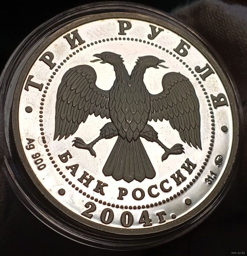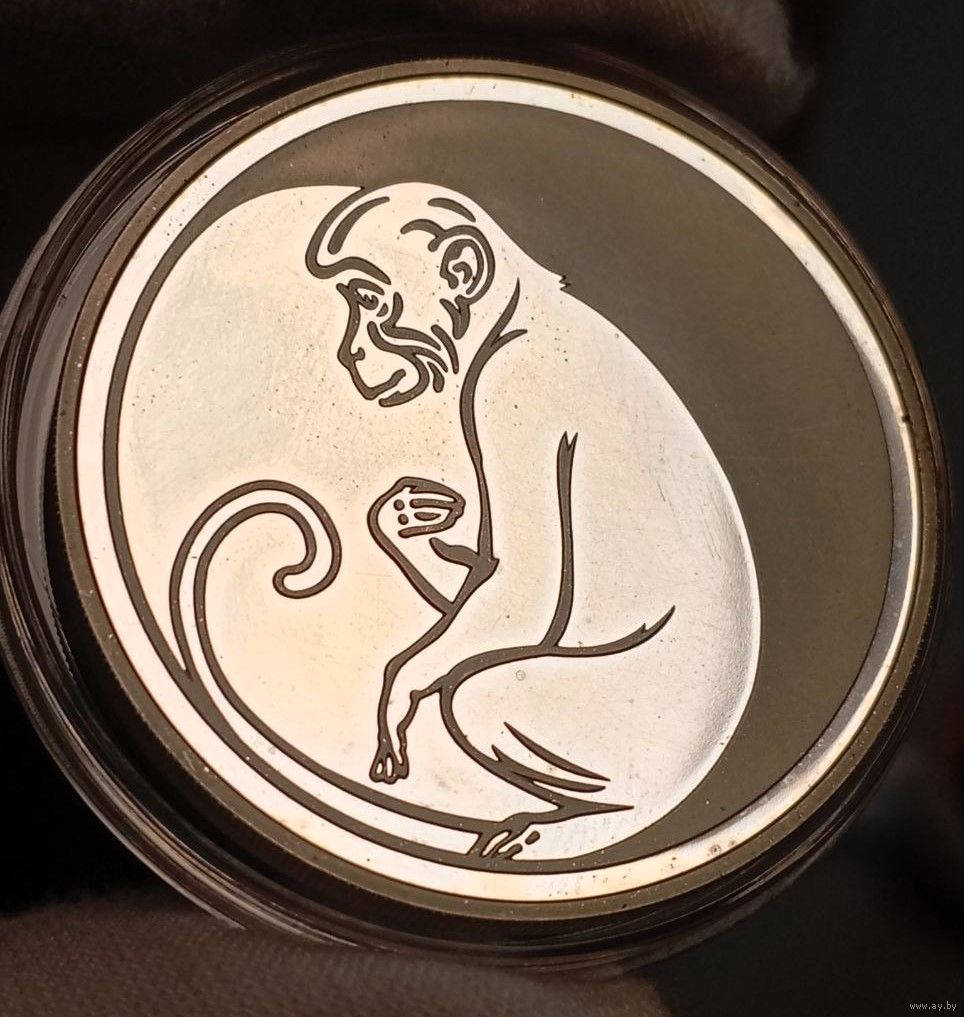 Коллекционная монета, 3 рубля "Лунный календарь - Год Обезьяны", РФ, 2004 год, ММД, тираж 15т. шт., улучшенный чекан, серебро 900 пробы, вес 34,88 г. (одна унция в чистоте металла), великолепный экземпляр в коллекцию и отличная инвестиция!