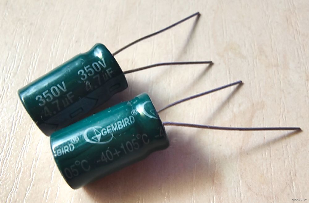 4,7 мкФ - 350 В ((Цена за 2 шт)) Gembird. 105 с. 4.7мкф. Конденсаторы электролитические. Электролиты. 350В