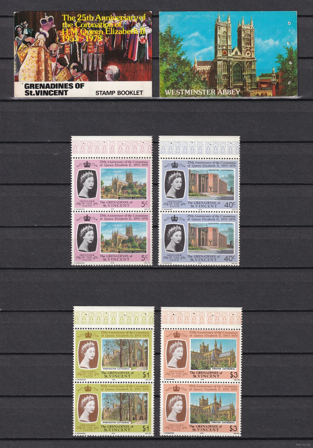 4.BrB. Великобритания. Колонии. Гренадины. 25 лет коронации Елизаветы II. 1978 г. Буклет. 2 Х Mi.##152A-155A.