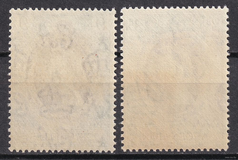 Марки в хорошем состоянии. Без наклейки. На обратной стороне присутствует частичное изменение цвета клея (см. скан для примера) - возможно имело место неправильное хранение коллекции. Наружная сторона в отличном состоянии без каких либо изменений цвета.