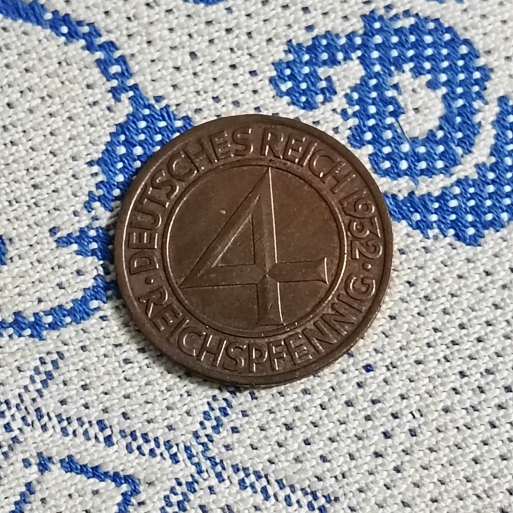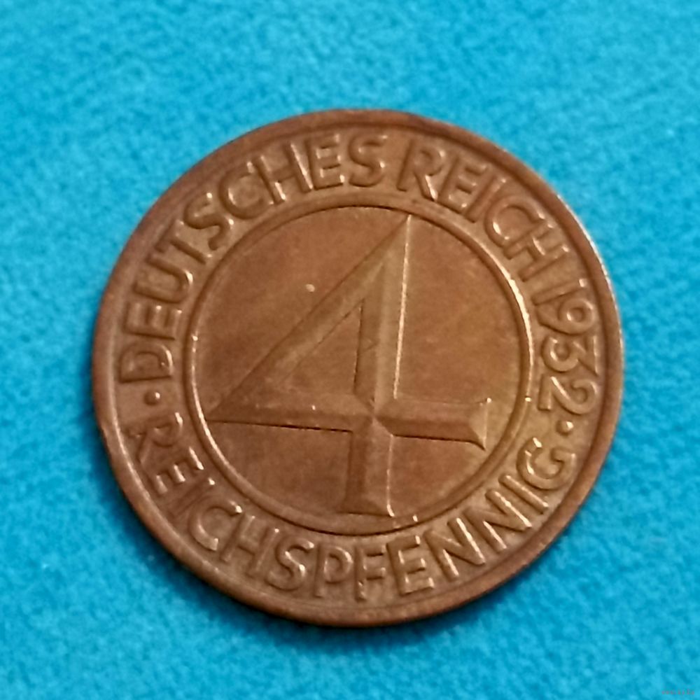 4 рейхспфеннинга(1932г.) Веймарская республика.М.Д.(А).
