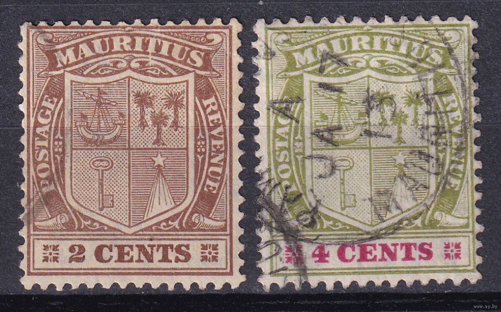 40.BrKM. Великобритания. Колонии. Маврикий. Герб. Стандарт. 2C, 4C. 1910 г. Mi.##132/134.