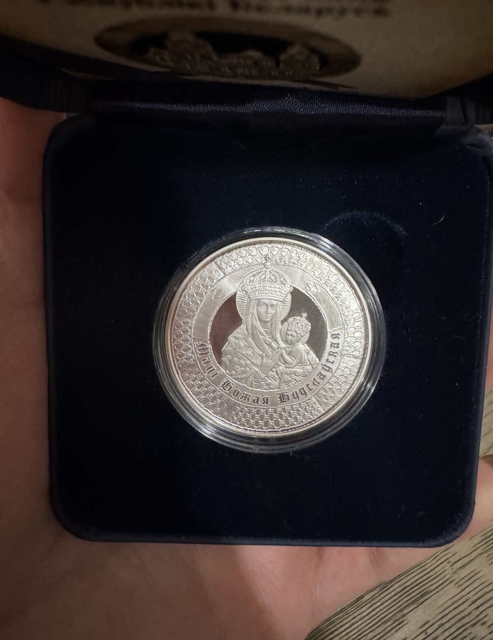 Реверс: в центре – изображение иконы, обрамленное лентой с надписью: МАЦІ БОЖАЯ БУДСЛАЎСКАЯ; по кругу монеты – орнаментальная полоса.