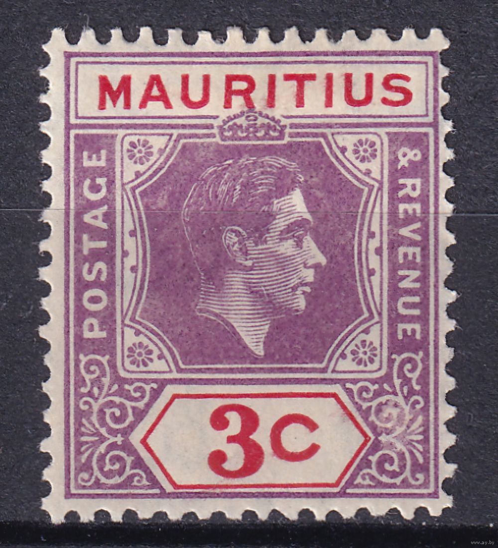 45.BrKM. Великобритания. Колонии. Маврикий. Георг VI. Стандарт. 3C. 1938 г. Mi.#204A.