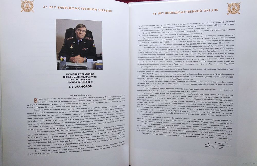 Альбом посвящен 45-летию вневедомственной охраны при Главном управлении внутренних дел Москвы. Московская вневедомственная охрана была создана 29 октября 1952 года с целью обеспечения сохранности государственной и всех других видов собственности, личного имущества и безопасности граждан. Ей вверены огромные материальные ценности.