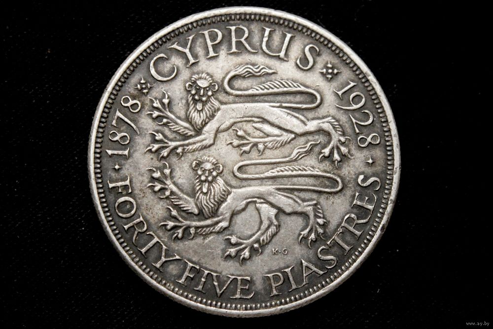 45 пиастров 1928 г. Кипр (Великобритания), Георг V. "50 лет английскому Кипру". Кабинетная патина, редкая!