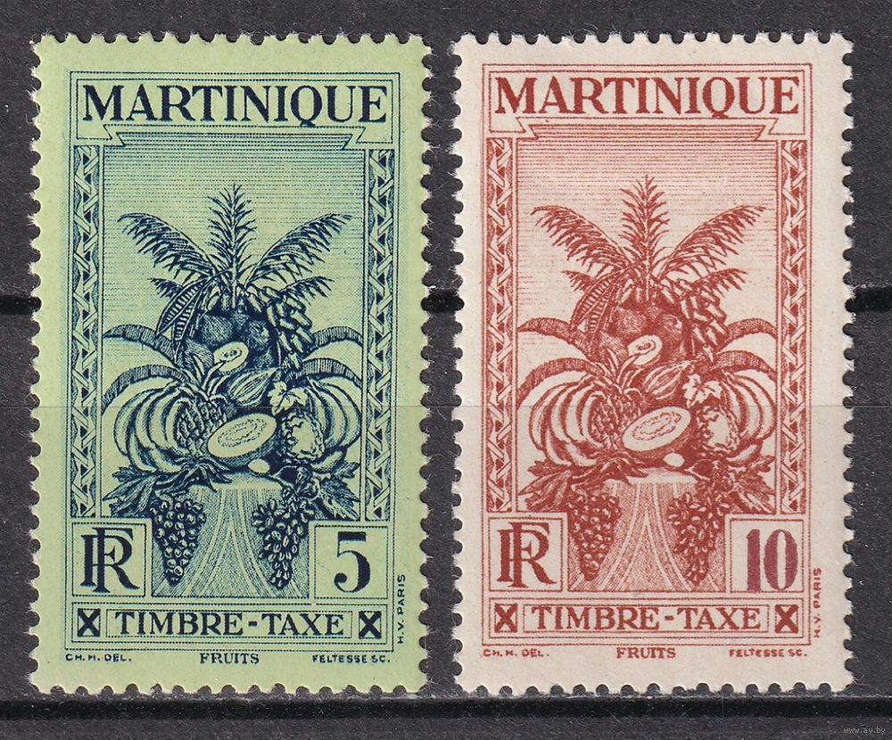 48.FrK. Франция. Колонии. Мартиника. Доплатные марки. Фрукты. 1933 г. 5C, 10C. Mi.##12-13.