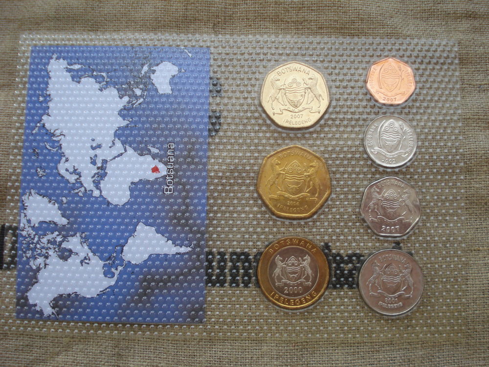 5, 10, 25, 50 тхебе, 1, 2, 5 пул Ботсвана набор