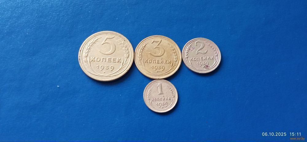 5,3,2 и 1 копейки 1939 год СССР (Состояние на фото,в лоте 4 монеты)