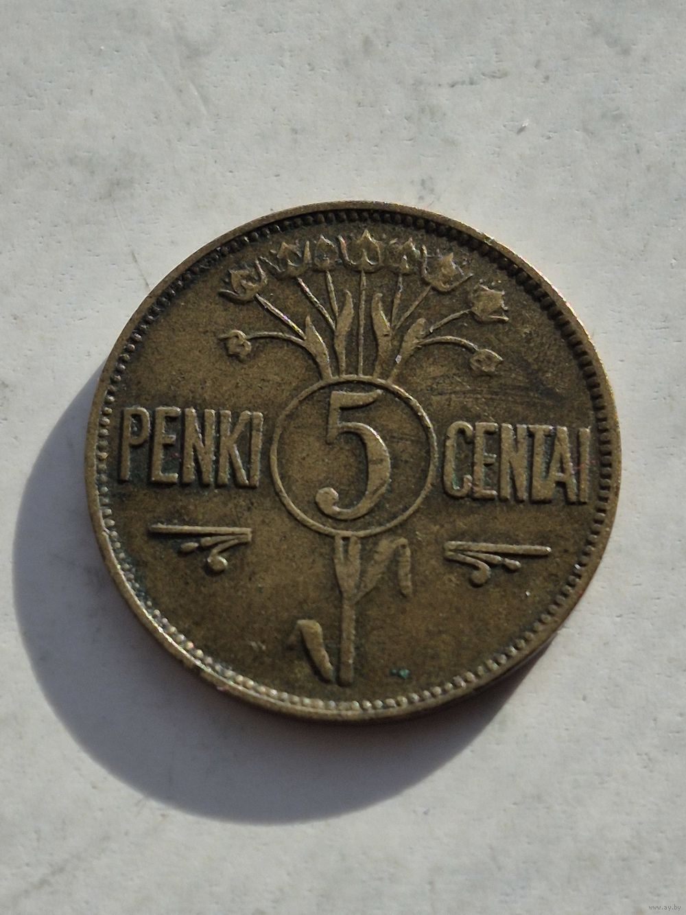 5 центов 1925 года. Литва - Первая Республика (1925 - 1938). Монета не чищена. 45244