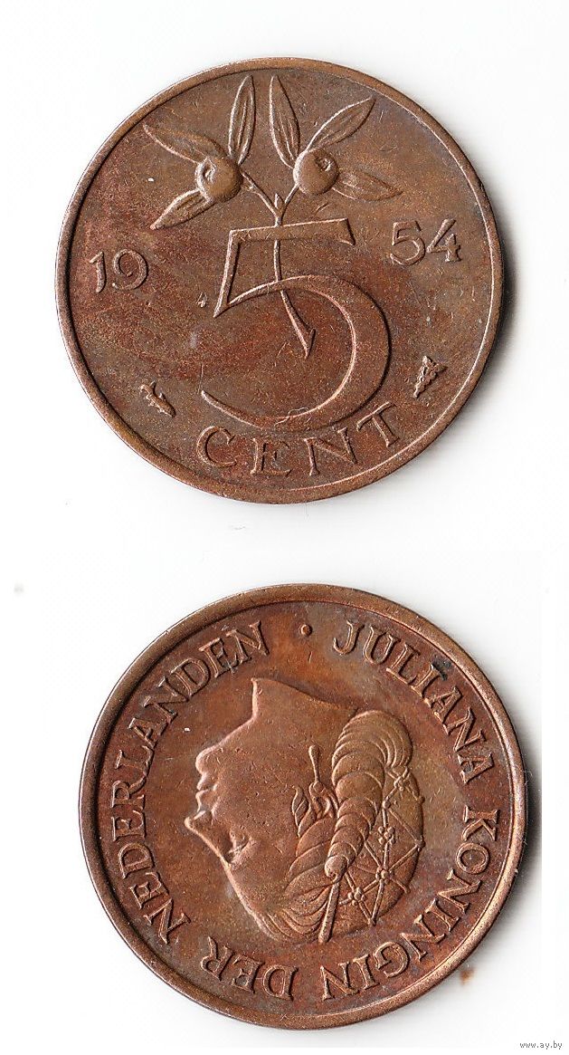 5 центов Нидерланды 1954 года