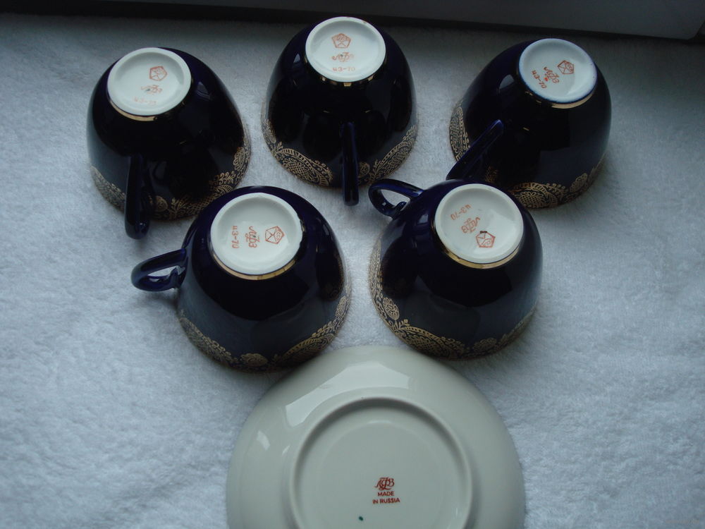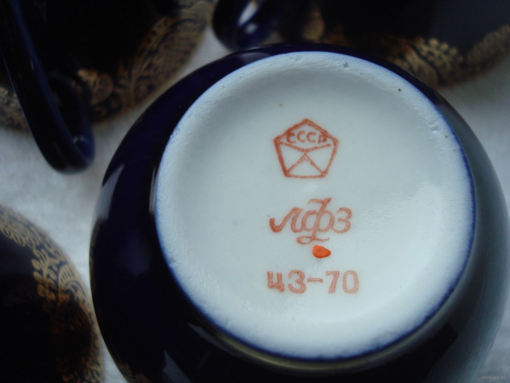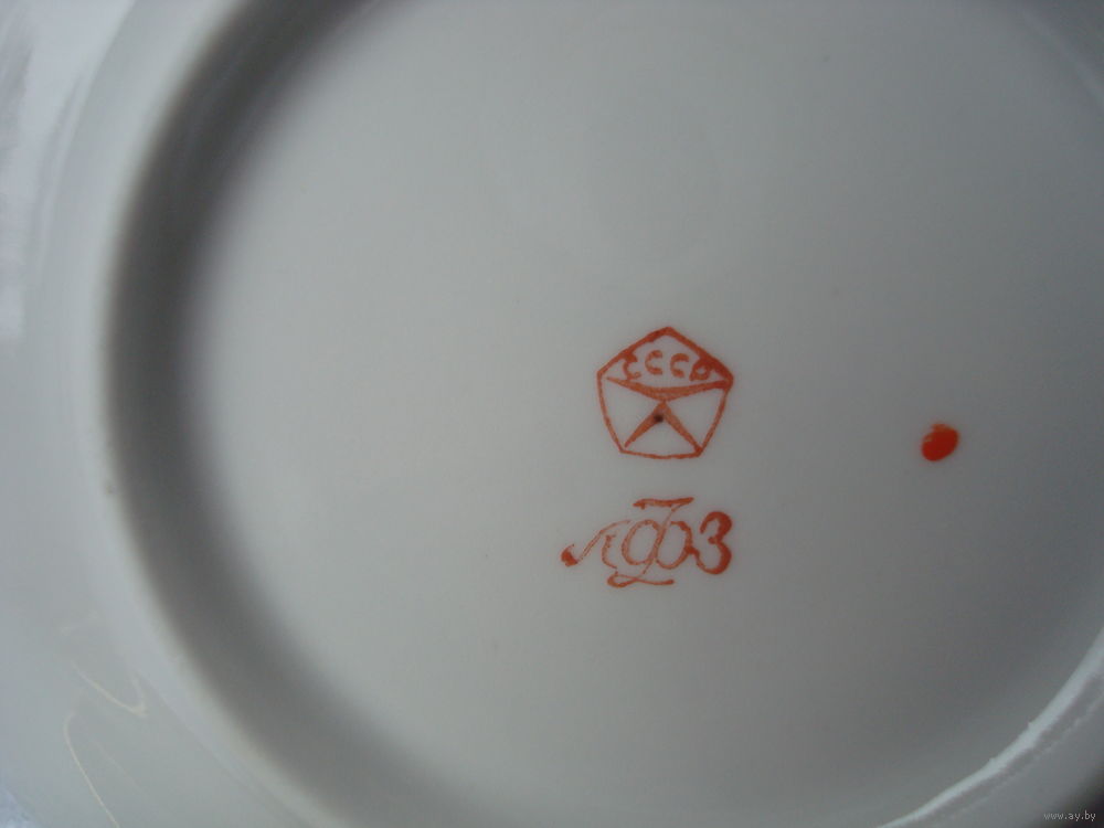 • На чашках - красное клеймо ЛФЗ  Знак качества и стоит цена 3-70,  на блюдцах - красное клеймо ЛФЗ и Знак качества.