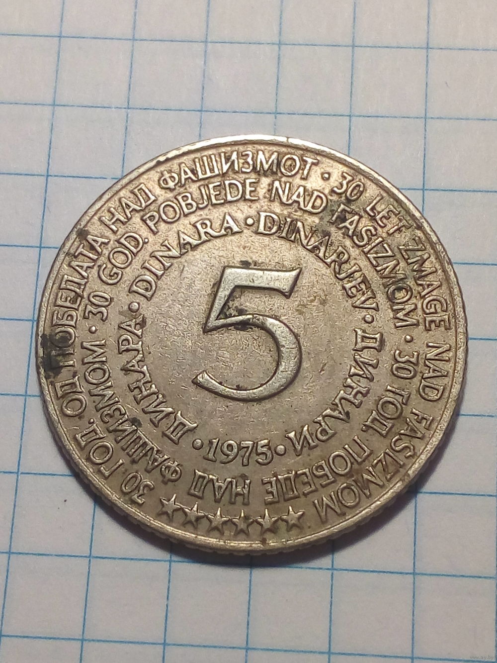 5 динар Югославия 1975 год освобождение