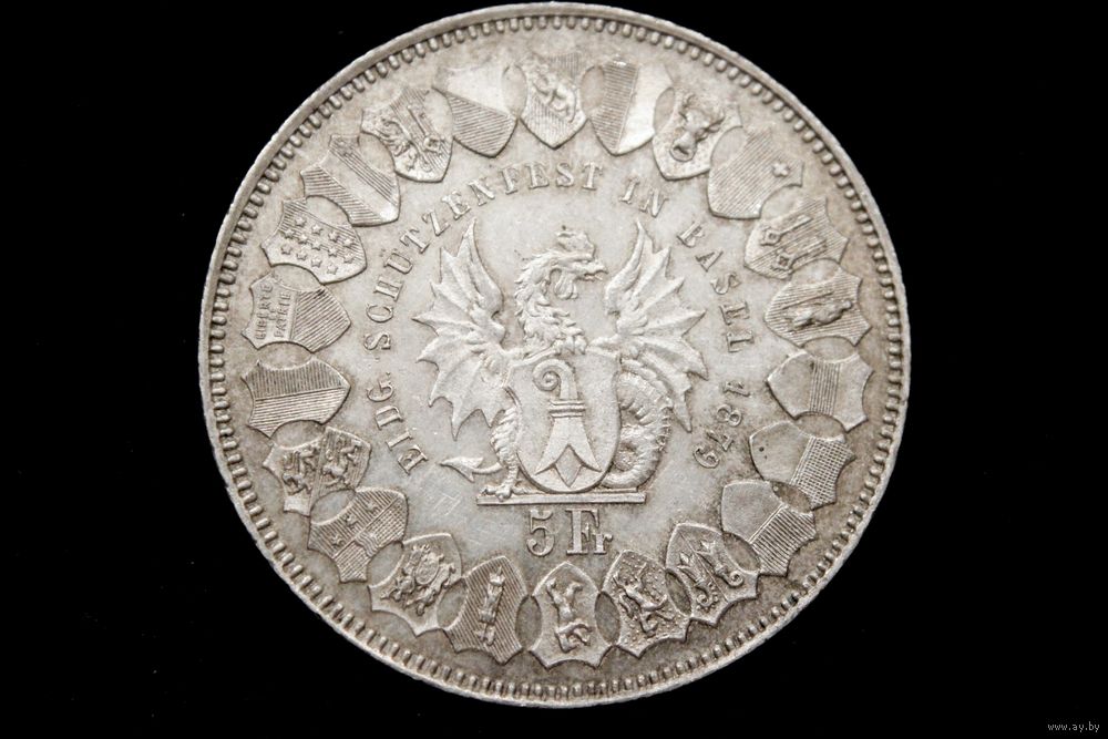5 франков 1879 г, Швейцария, Бернхард Хаммер. "Стрелковый фестиваль в Базеле". Сохран, редкая!