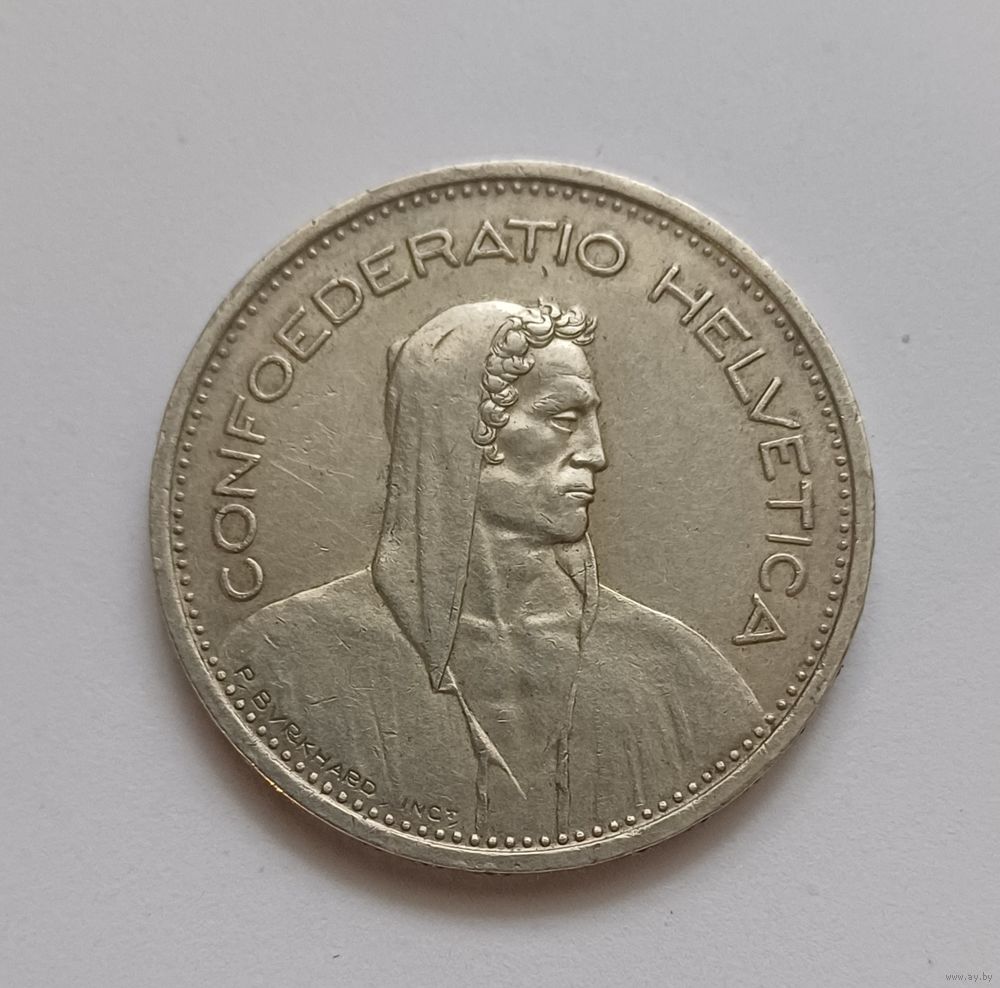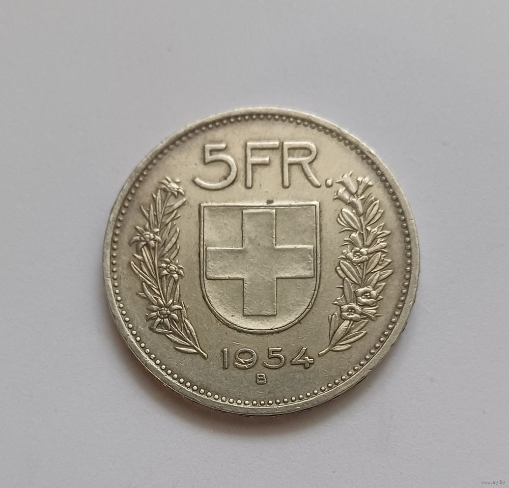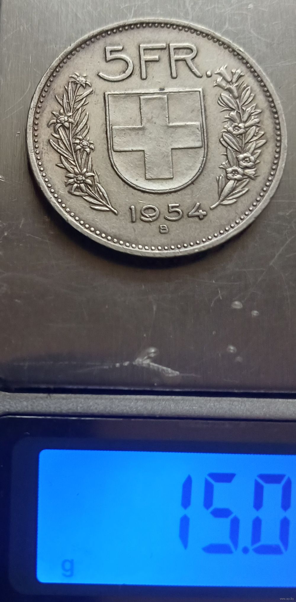 5 франков. 1954г. 835пр., серебра. Швейцария.
