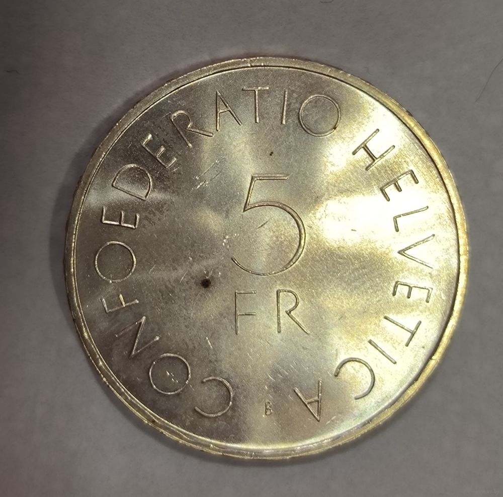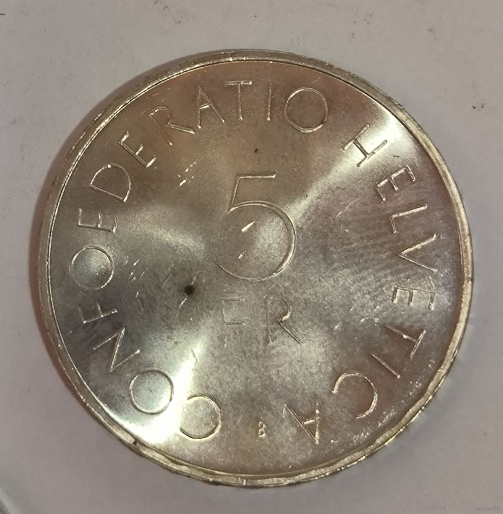 5 франков 1963 конституция Швейцария серебро идеальная!