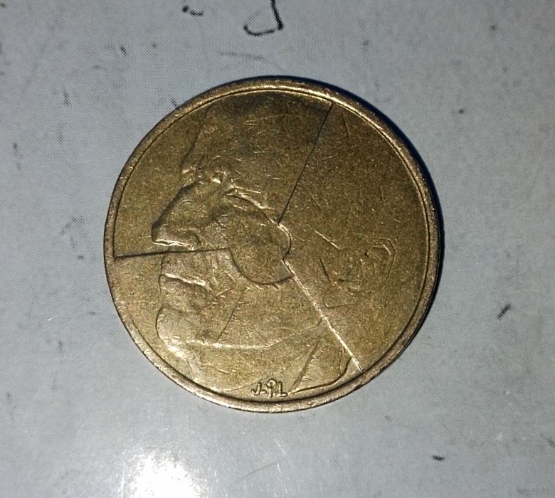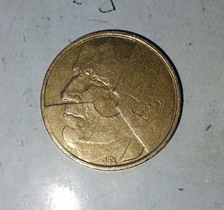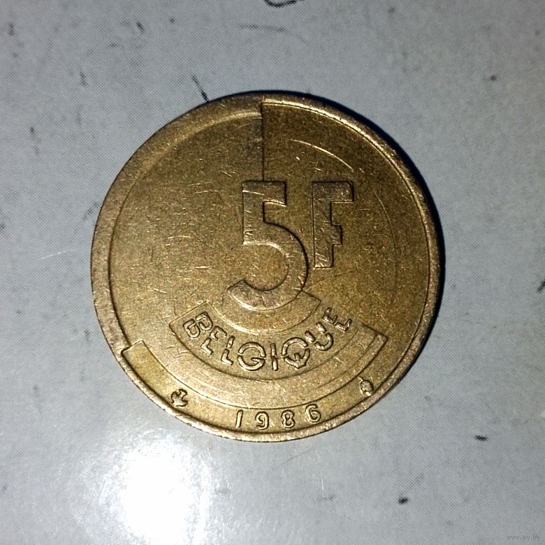 5 франков 1986 года Бельгия (надпись на французском ом "BELGIQUE"). Король Бодуэн 1(1948-1993).