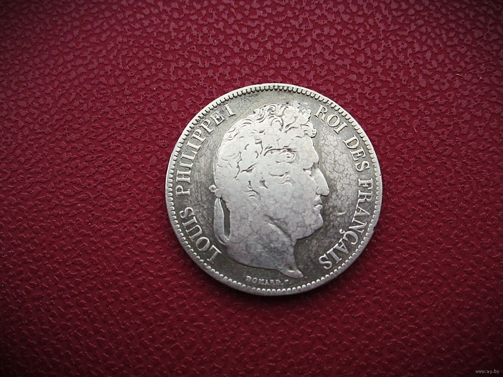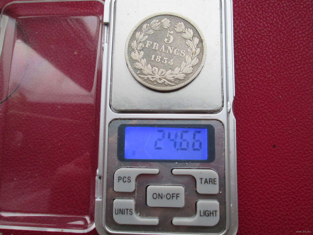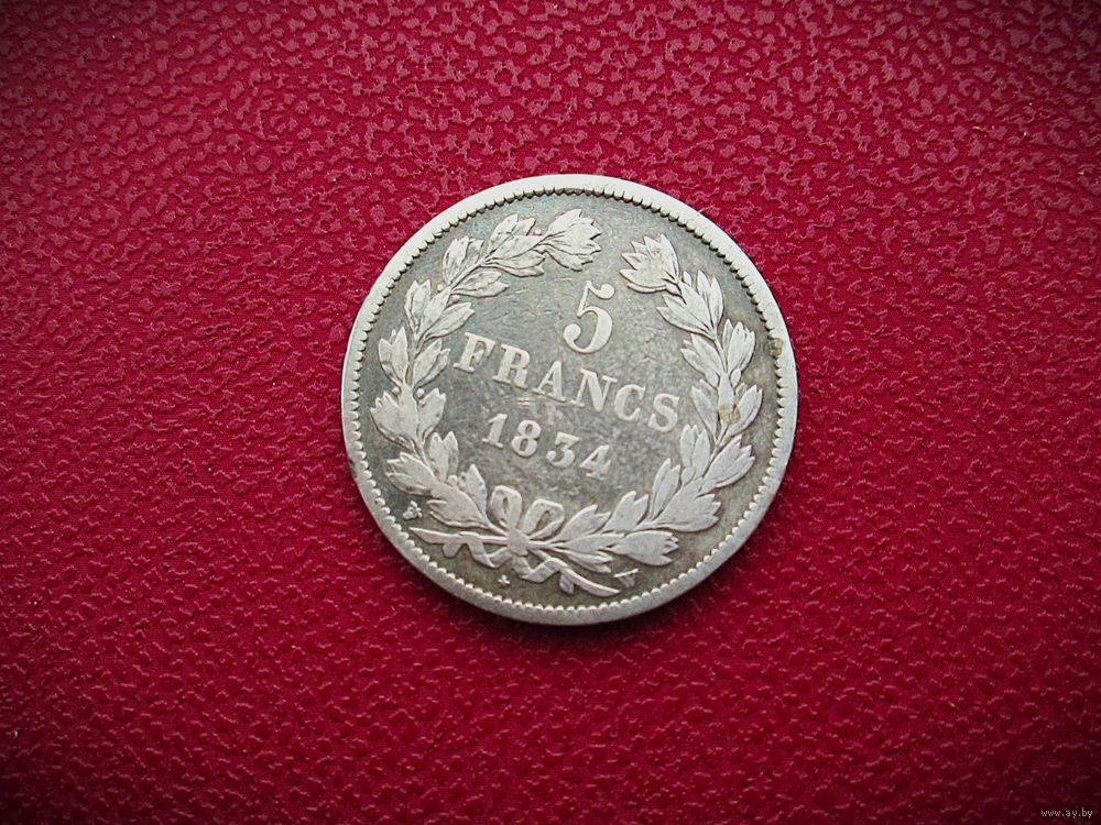 5 ФРАНКОВ (W) 1834г., Франция, СЕРЕБРО 900.