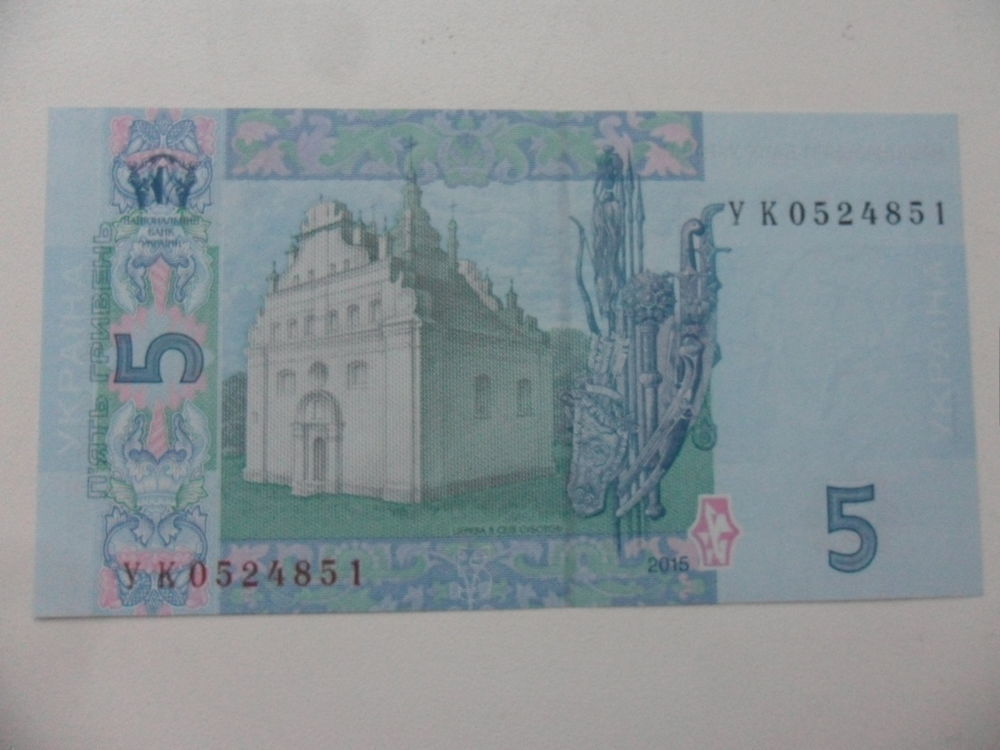 5 гривен Украина 2015 г.в. Серия УК. /UNC/