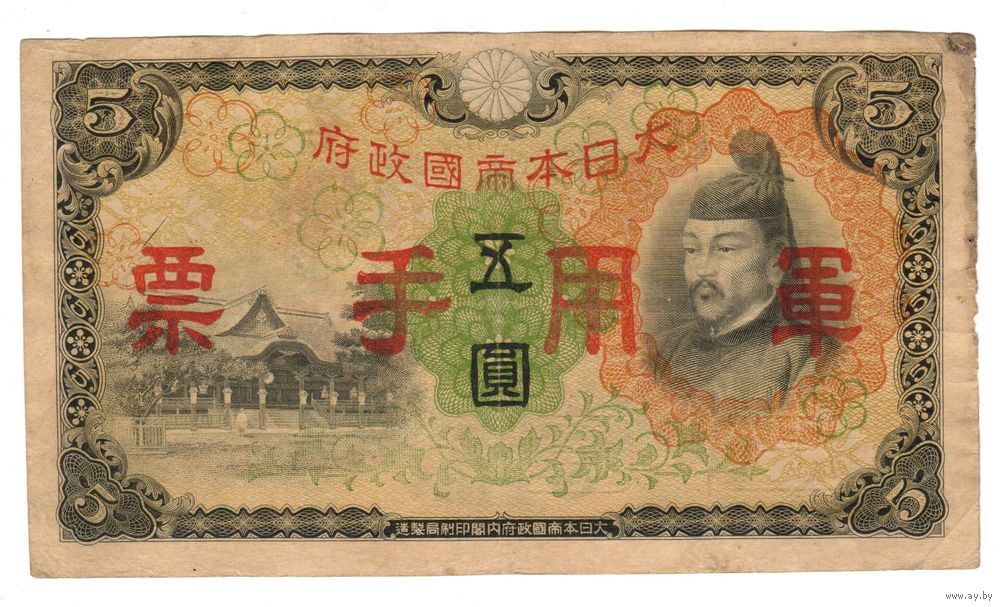 5 йен 1938 Китай японская оккупация коллекционная банкнота