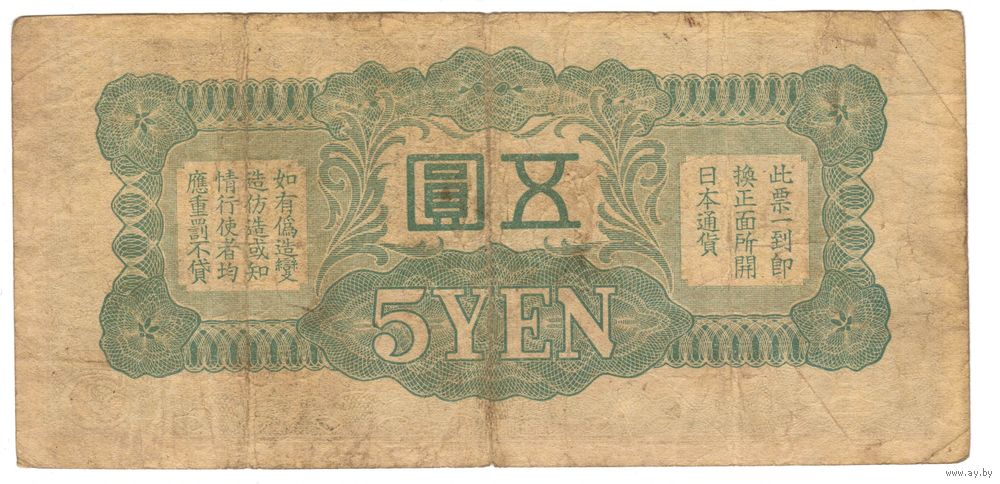 5 йен 1940 Китай японская оккупация коллекционная банкнота