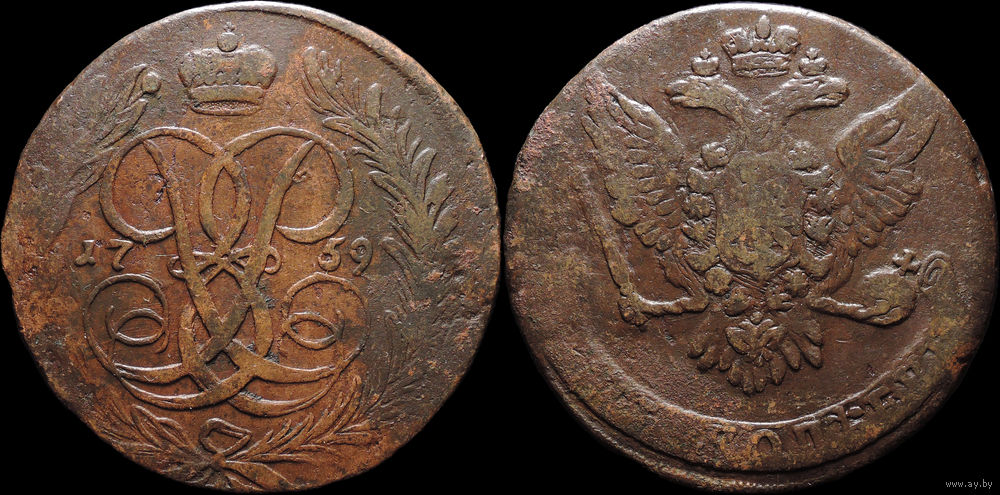 5 копеек 1759, Отличная! С 1 Рубля! Смотрите другие лоты!