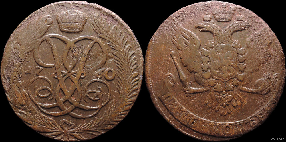 5 копеек 1760, Отличная! С 1 Рубля! Смотрите другие лоты!
