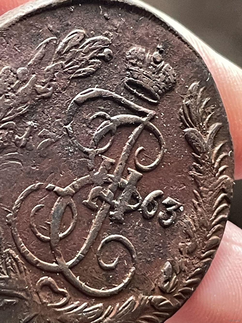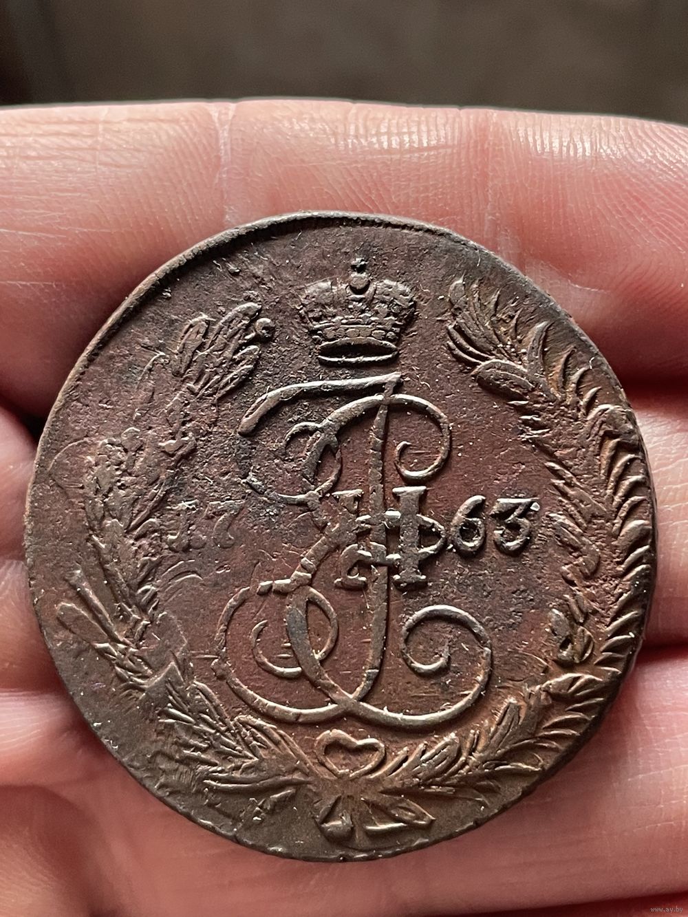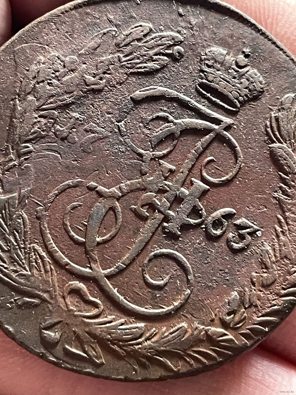 5 копеек 1763 ЕМ без МЦ.Перечекан.