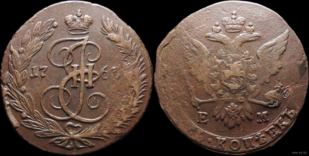 5 копеек 1763 ЕМ, Отличная! С 1 Рубля! Смотрите другие лоты!