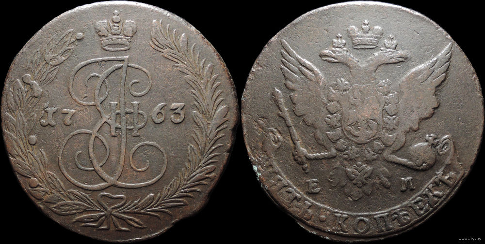 5 копеек 1763 ЕМ, Отличная! С 1 Рубля! Смотрите другие лоты!