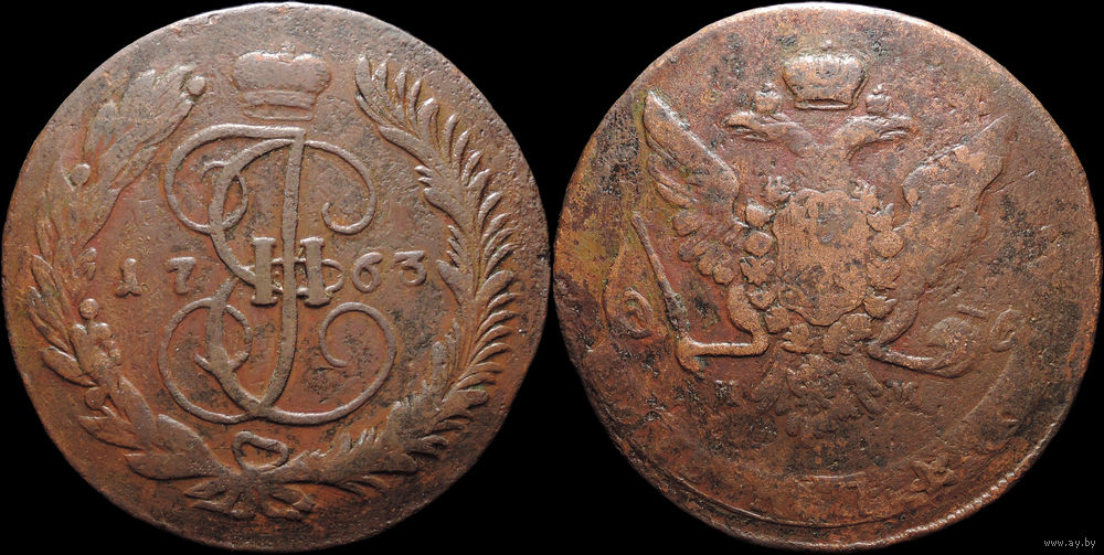5 копеек 1763 ММ, Перечекан! С 1 Рубля! Смотрите другие лоты!