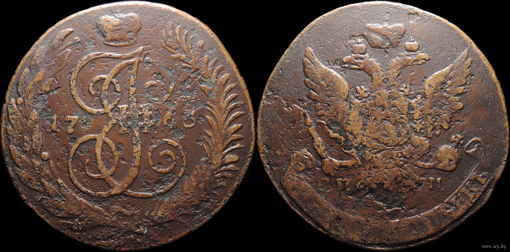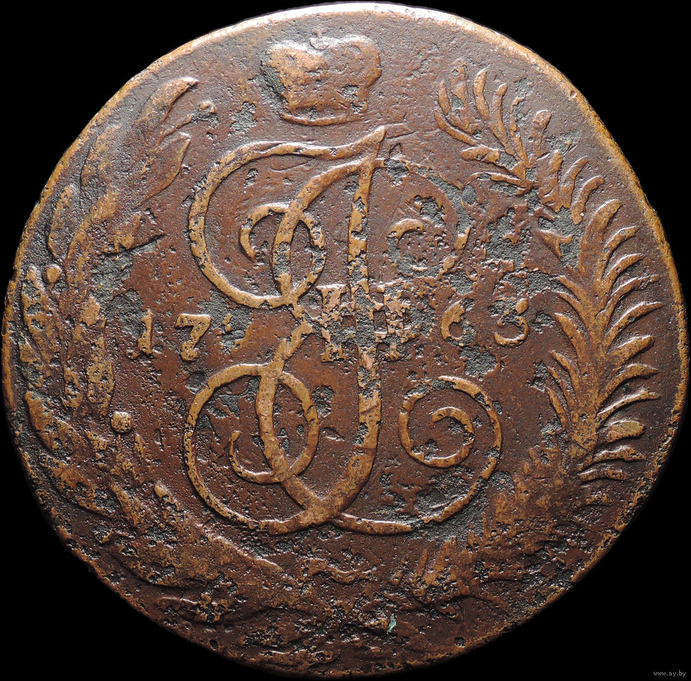 5 копеек 1763 СПМ большие, Перечекан! С 1 Рубля! Смотрите другие лоты!