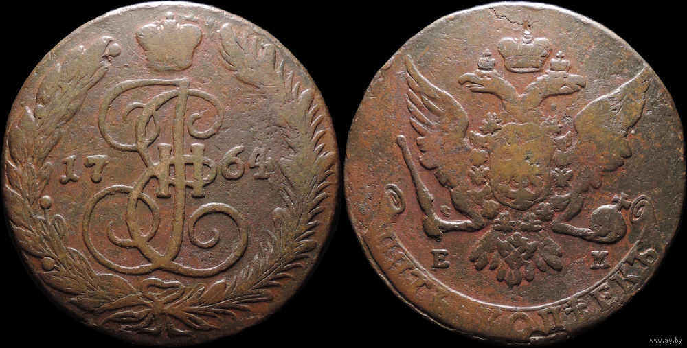 5 копеек 1764 ЕМ, Отличная! С 1 Рубля! Смотрите другие лоты!