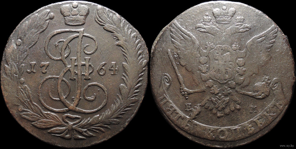 5 копеек 1764 ЕМ, Отличная! С 1 Рубля! Смотрите другие лоты!