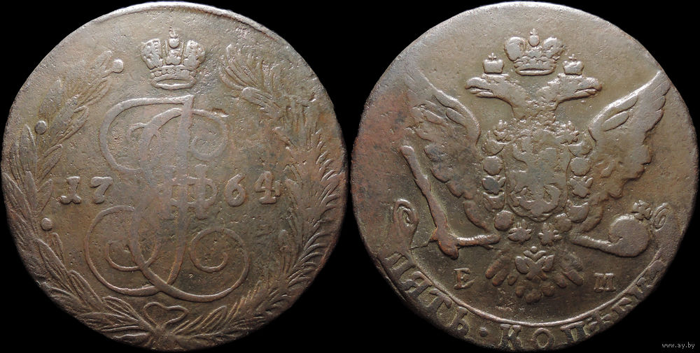 5 копеек 1764 ЕМ, Отличная! С 1 Рубля! Смотрите другие лоты!
