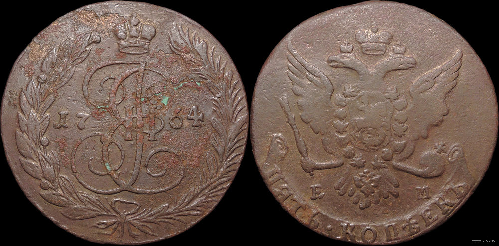 5 копеек 1764 ЕМ, Отличная! С 1 Рубля! Смотрите другие лоты!