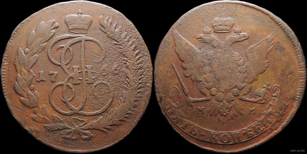 5 копеек 1766 ММ, Перечекан! С 1 Рубля! Смотрите другие лоты!