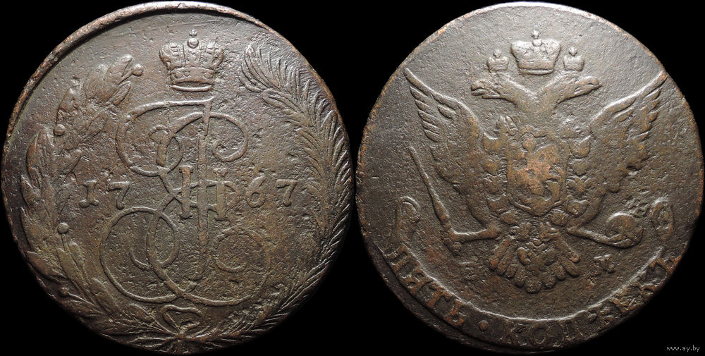 5 копеек 1767 ЕМ, Отличная! С 1 Рубля! Смотрите другие лоты!