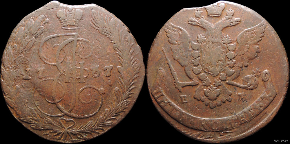 5 копеек 1767 ЕМ, Отличная! С 1 Рубля! Смотрите другие лоты!