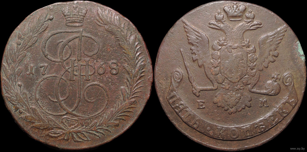 5 копеек 1768 ЕМ, Отличная! С 1 Рубля! Смотрите другие лоты!