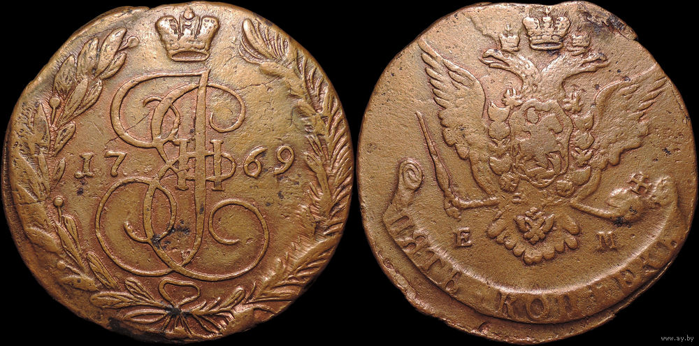 5 копеек 1769 ЕМ, Отличная! Орел 1763-1767! Биткин R!