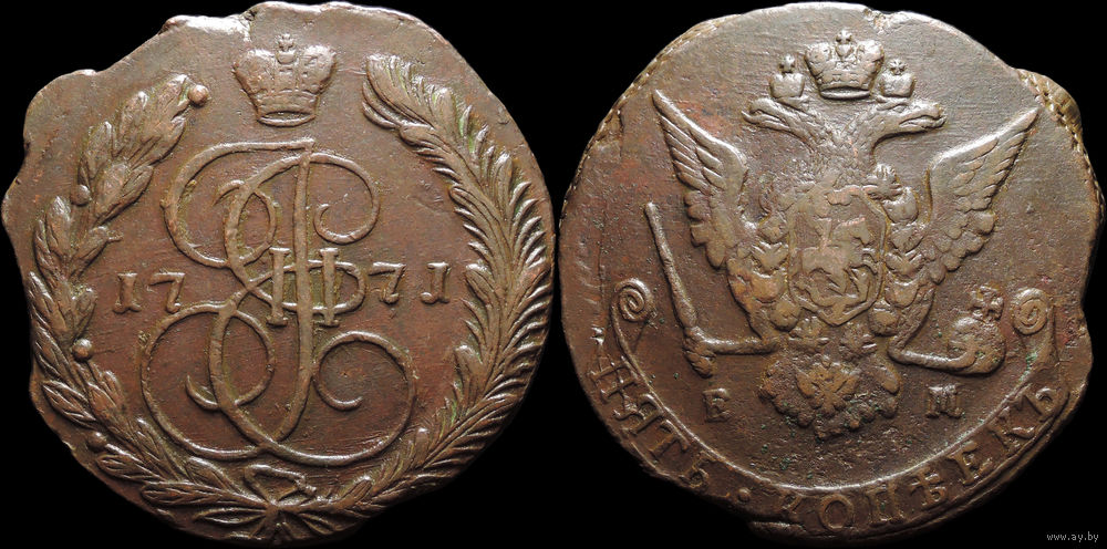 5 копеек 1771 ЕМ, Отличная! С 1 Рубля! Смотрите другие лоты!